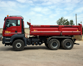 Insgesamt besitzen wir 13 Mercedes Benz Lkws, 4 MAN Lkws, 3 Anhänger,