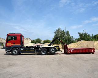 - transportiert alle Arten von Baustoffen wie Kies, Sand, Füllkies, Mineralgemisch, Asphalt, Steine (auch auf Paletten)