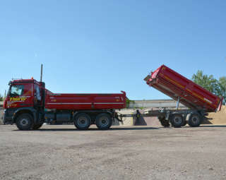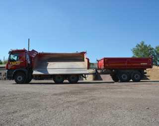 - transportiert alle Arten von Baustoffen, wie Kies, Sand, Füllkies, Mineralgemisch, Asphalt, Steine